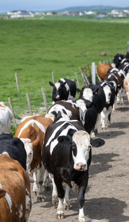 Happy and healthy cows are our main priority on the farm. During the winter, Orkney has little daylight, and the weather can be extremely harsh and cold, so our cows come in to be wintered inside. And as the daylight becomes longer and the days get warmer, our cows are kept outside during the summer.