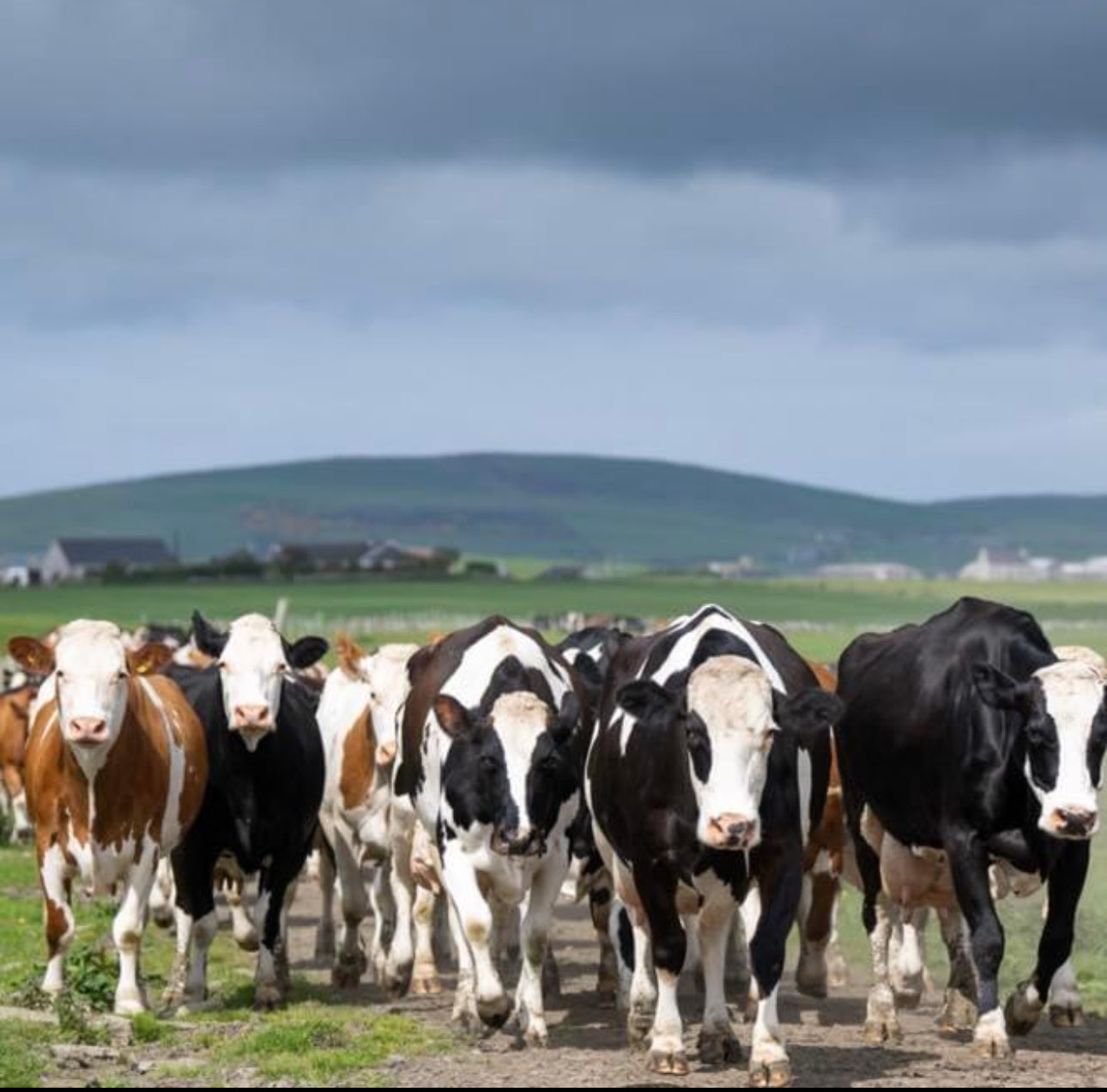 Here at Bain Farm, we have a unique breed of cow to Orkney. In 2010, Willie imported two pure bred pedigree Fleckvieh heifers, with another 7 within the same year. This was with the aim of improving the quality of the milk. Over the last 10 years they have been integrated throughout the herd, as well as taking home few Pedigree Fleckvieh bulls to breed with the holstein friesians already in the herd. Now the herd is 90% Fleckvieh, and the milk is of top quality. The milk contains a high level of butter fat, and high protein, meaning our product is off the top quality.